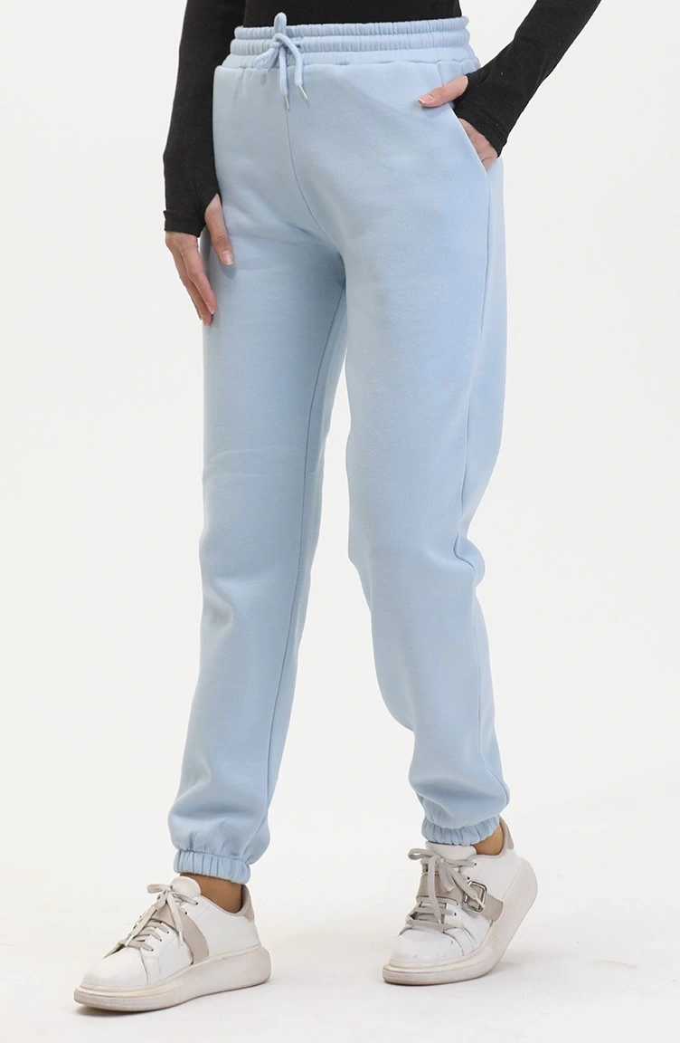 3 iplik şardonlu paça lastikli eşofman bebe mavi IS001, spor yaparken rahatlığınızdan ödün vermeyen kadın eşofmanıdır.