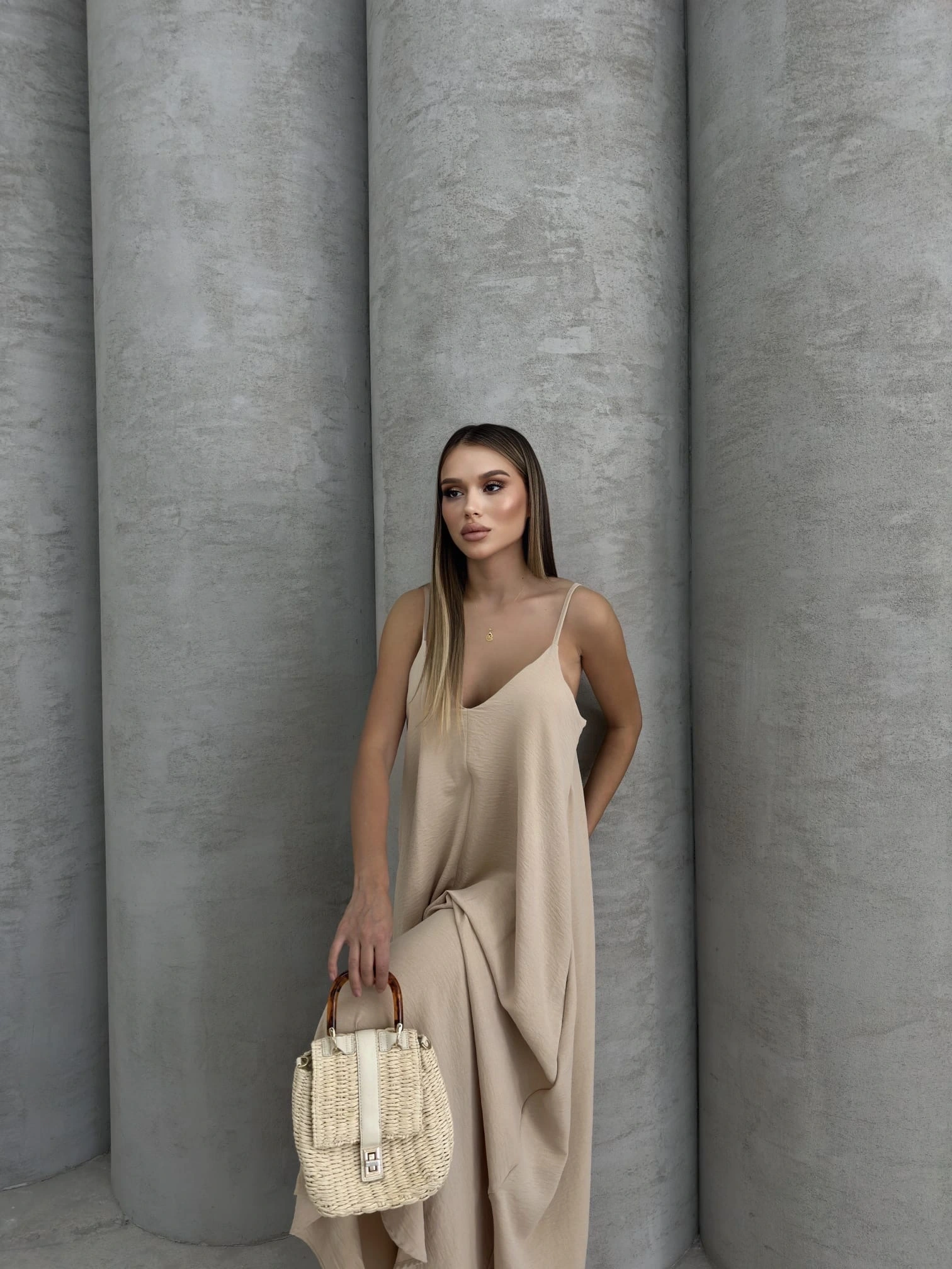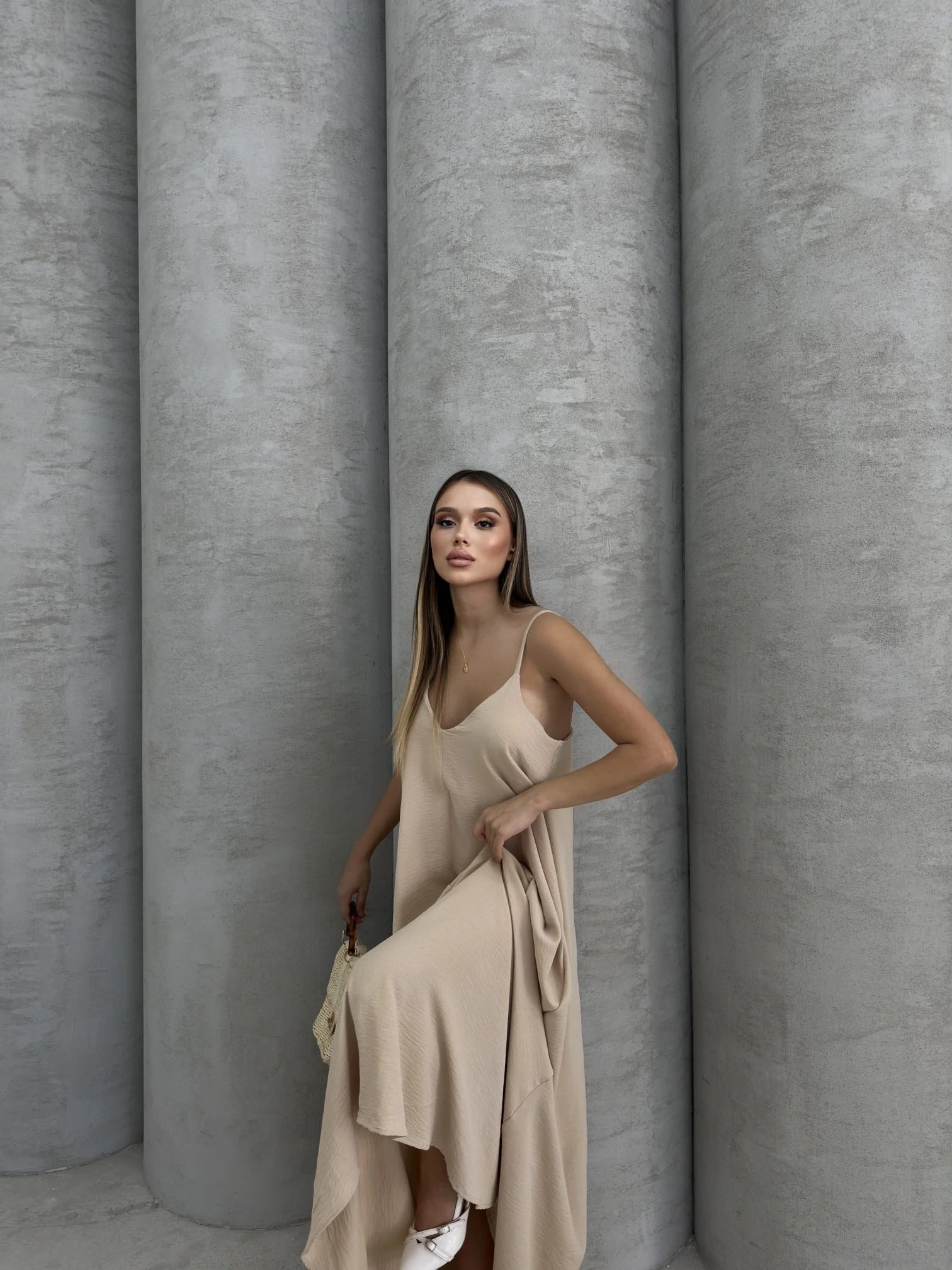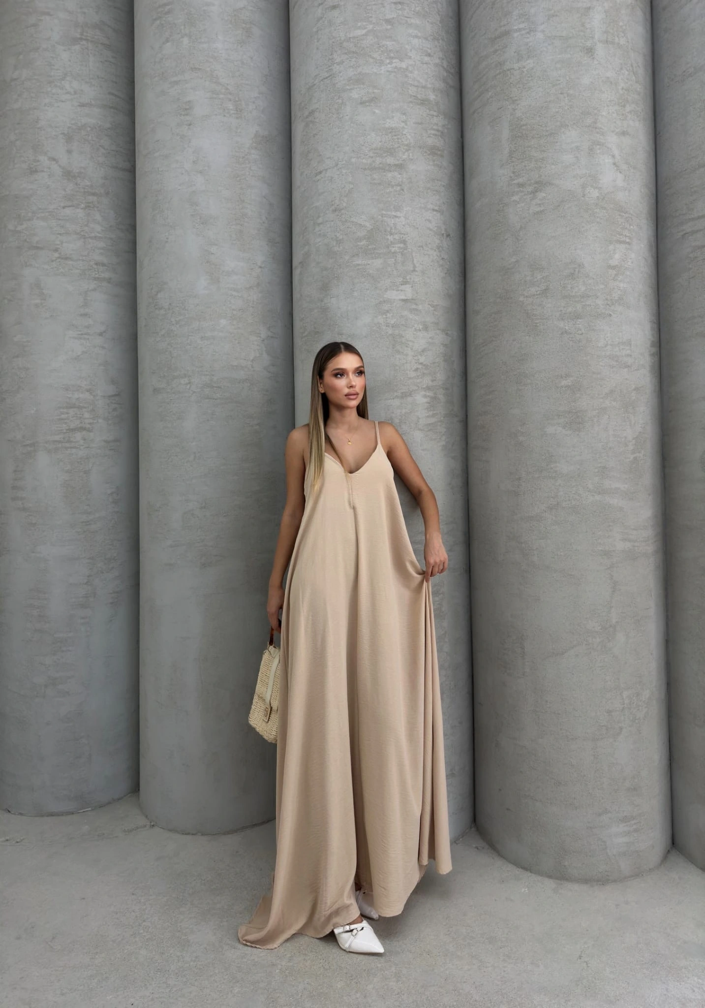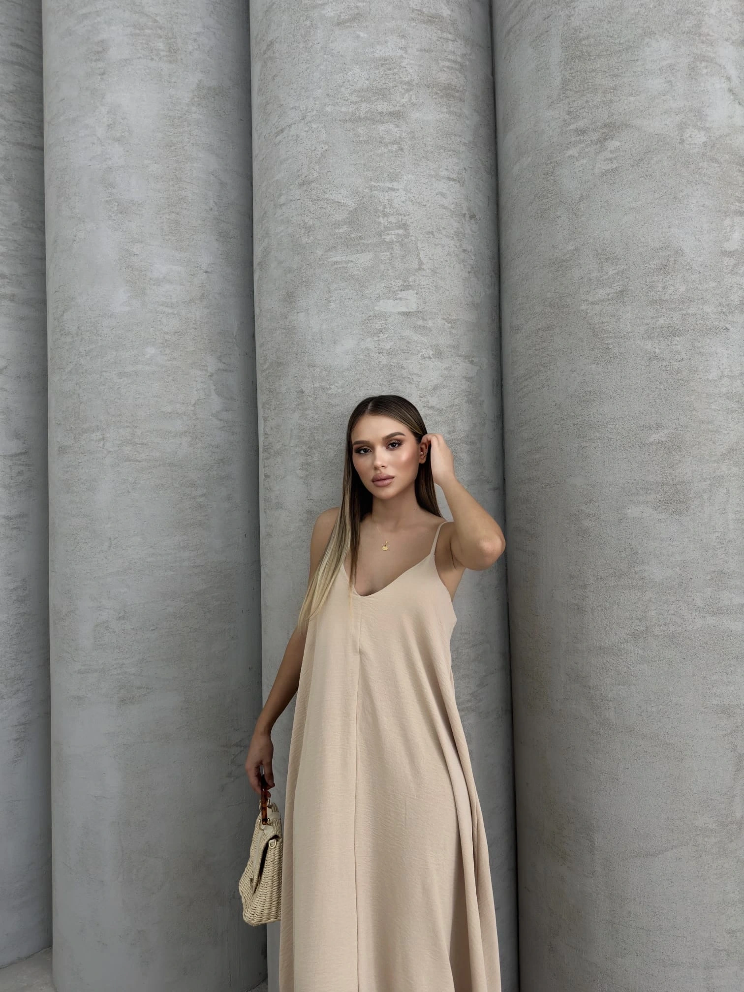 Aerobin uzun elbise, şıklığı ve rahatlığı bir arada sunan bir parçadır. Bej rengi, her mevsim kullanabileceğiniz ve farklı kombinasyonlar yaratabileceğiniz bir seçenektir.