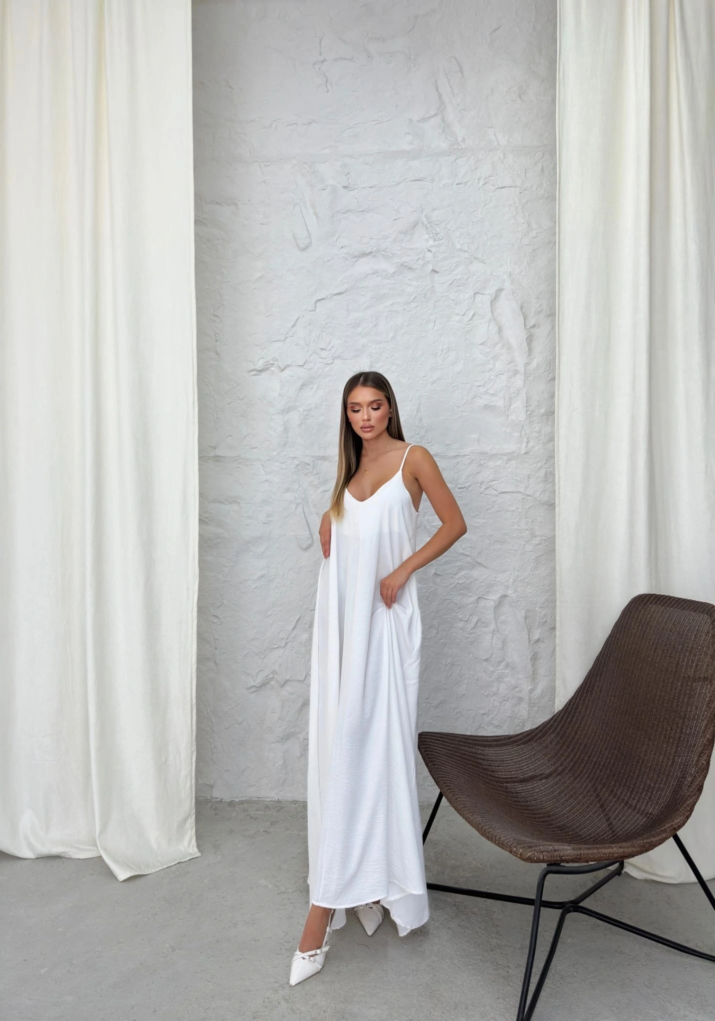 Aerobin markasının şık tasarımıyla öne çıkan uzun elbise saks beyaz rengiyle göz kamaştırıyor. Hem zarif hem de rahat kesimiyle günün her saati şıklık ve konfor sunuyor.