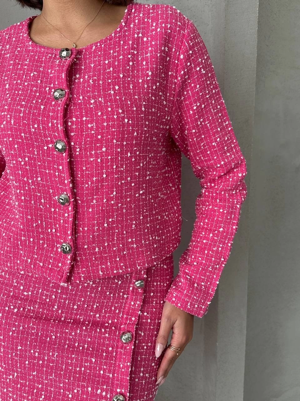 Şıklığı ve rahatlığı bir arada sunan chl kumaştan üretilmiş ceketli etek takımı, gardırobunuzun vazgeçilmezi olmaya aday! H24443 modeli ile öne çıkan bu takım, kadın giyiminde zarif bir seçenek sunuyor.