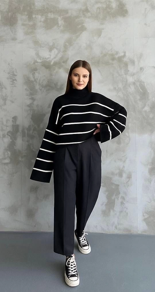 İspanyol Kol Triko Boğazlı Kazak, hem günlük hayatta hem de özel davetlerde stilinizi tamamlayacak harika bir seçenek. Şimdi siz de gardrobunuza şıklık katmak için bu kazakla tarzınızı yansıtın!