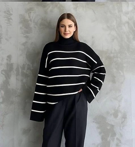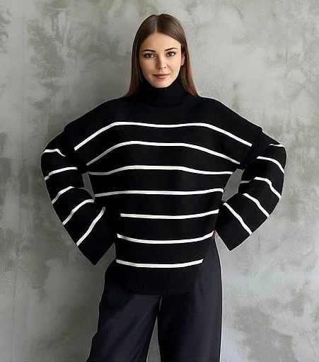 İspanyol Kol Triko Boğazlı Kazak ile tarzınızı ve rahatlığınızı bir arada bulacaksınız. Siyah rengiyle şıklığınızı tamamlayacak olan bu kazak, farklı desenleriyle de dikkat çekiyor. İspanyol kol detayıyla kolayca kombinleyebileceğiniz kazak, günün her saatinde size eşlik edecek.