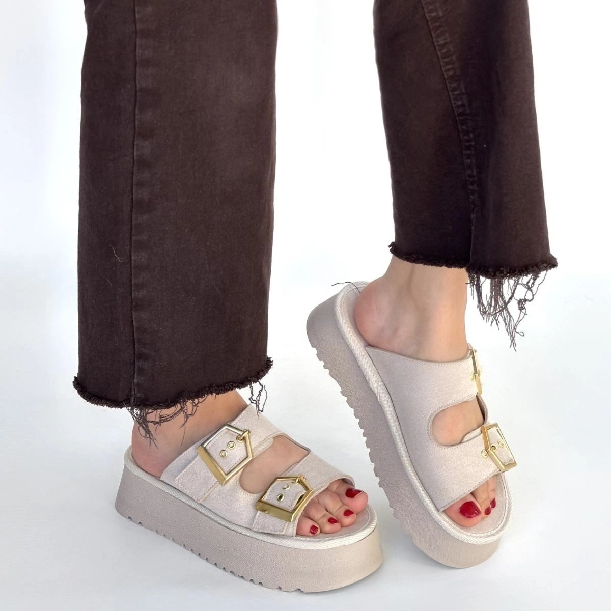 Detay: Çift Tokalı Terlik İçi Dışı Süet