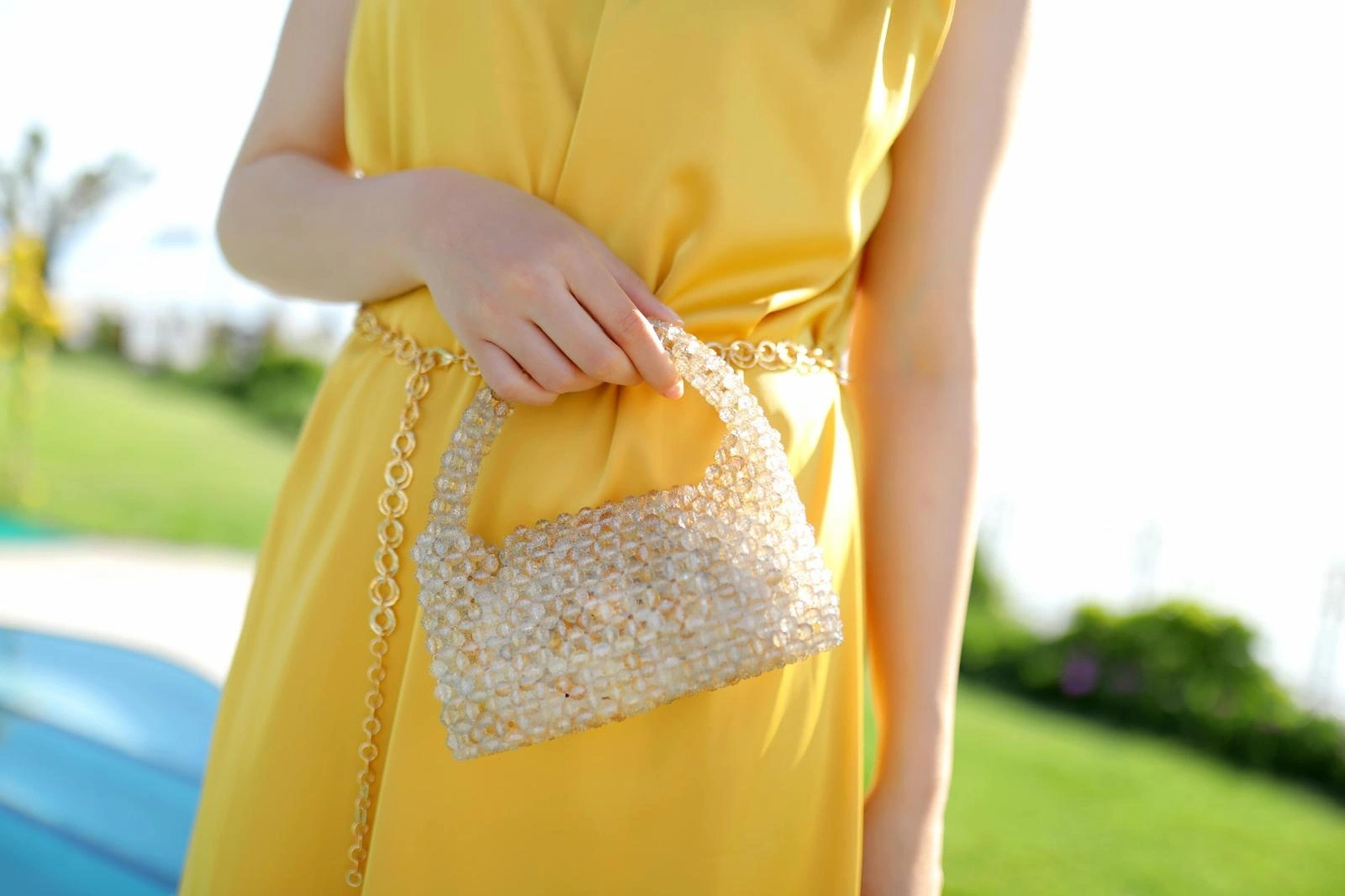 Bu şık el yapımı incili el çantası, her tarza ve her duruma uygun bir seçenektir. İncilerle süslenmiş tasarımı, sade ve zarif bir görünüm sunar.