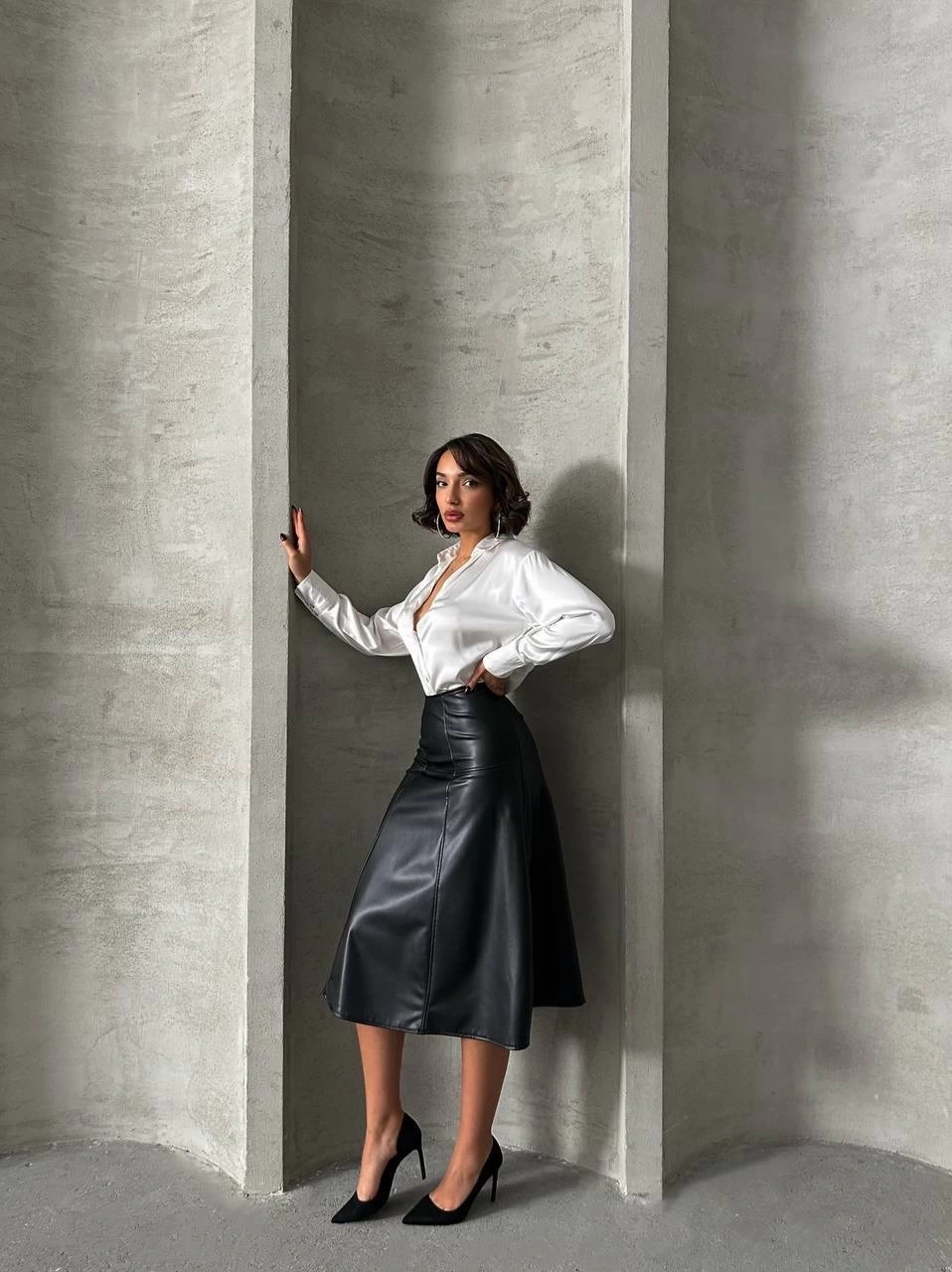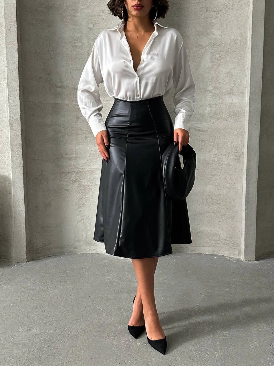 Şıklığı ön planda tutan Komple parçalı deri eteği, gece davetlerinden günlük şıklığa kadar birçok farklı kombinle kullanabilirsiniz.