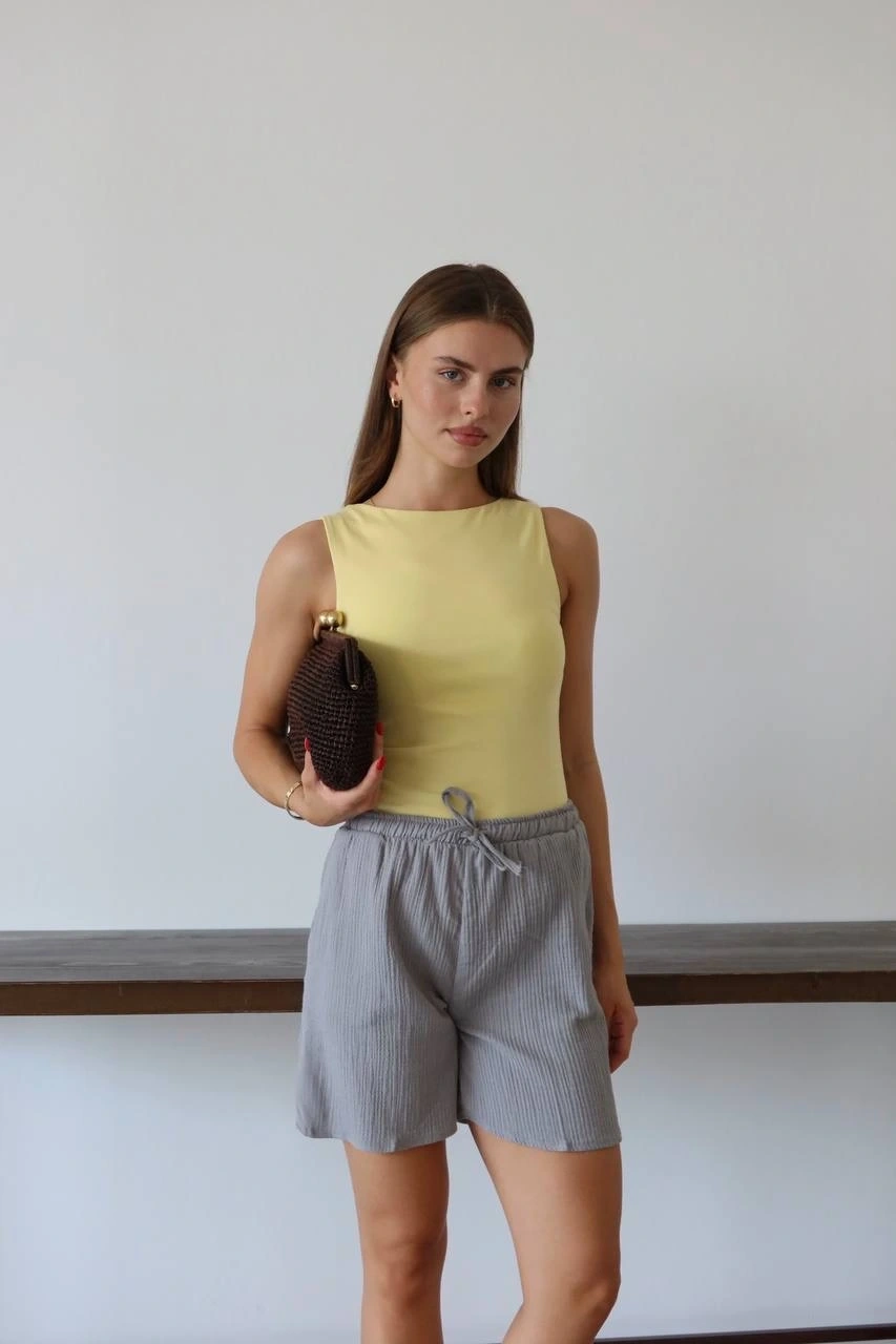 Şıklığı ve rahatlığı bir arada sunan Müslin Kumaş Şort Bağcıklı Gri PT, yaz aylarının vazgeçilmez parçası olmaya aday!