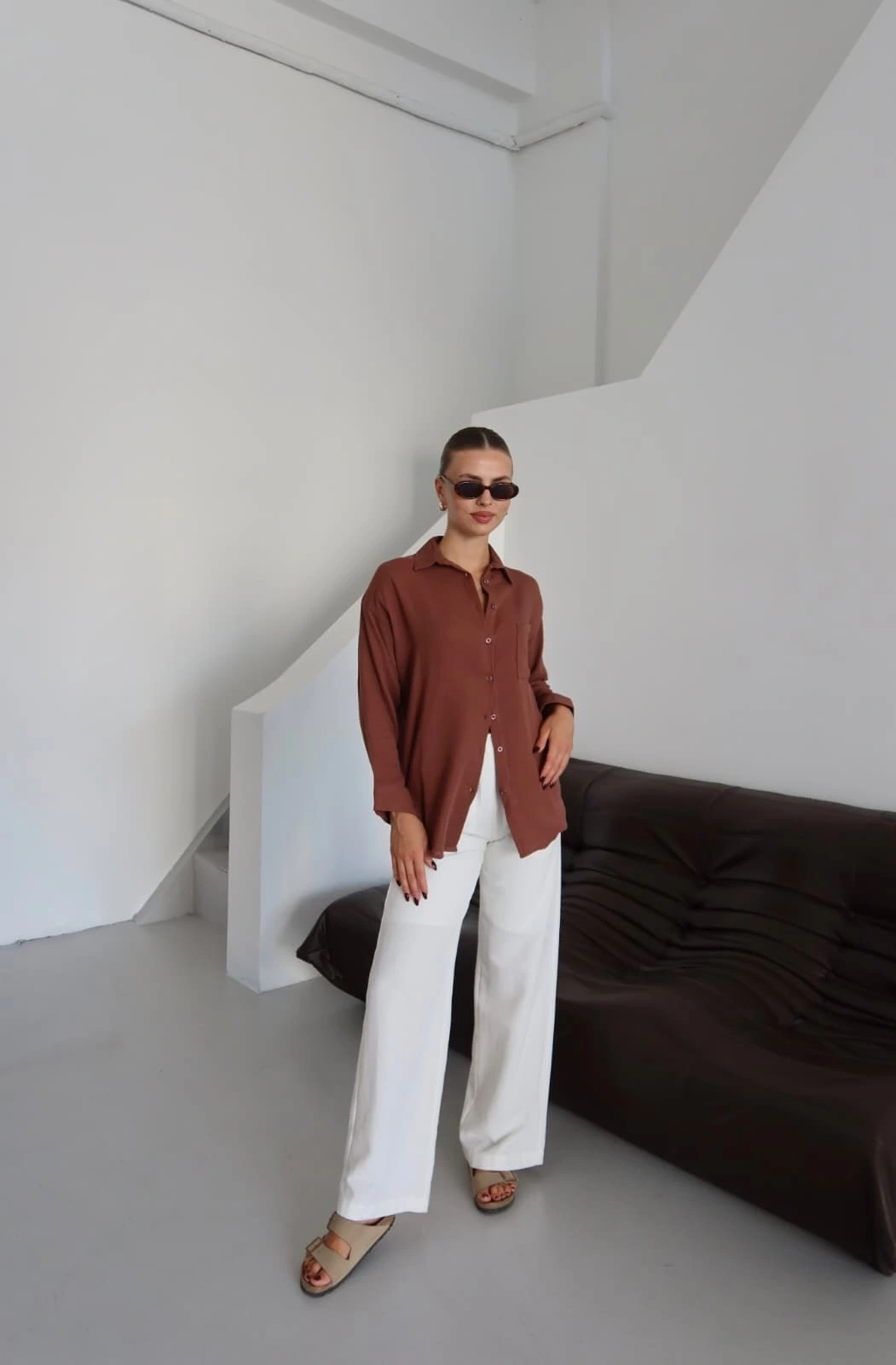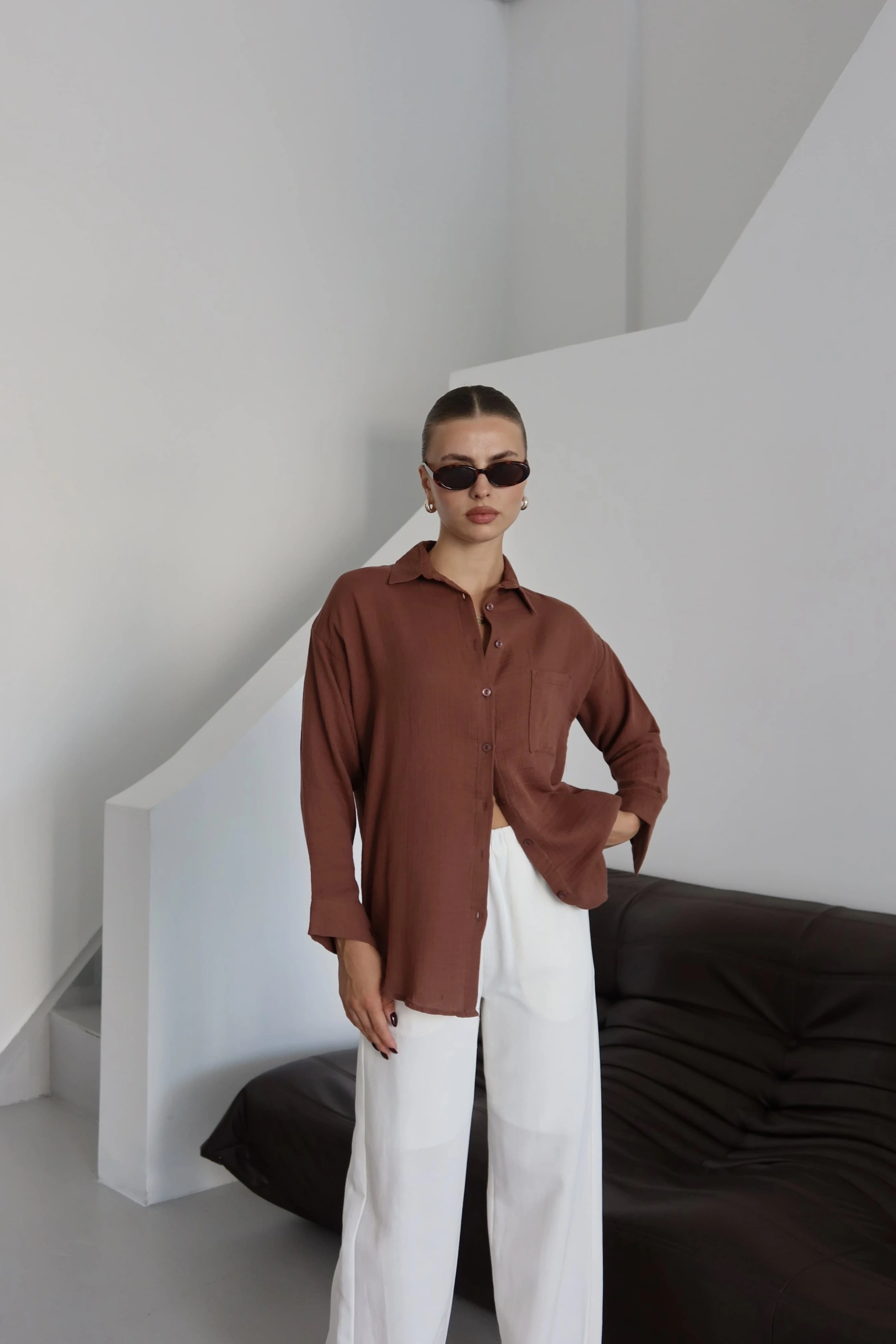 • Kadın Giyim kategorisindeki şıklık ve rahatlığı buluşturan Müslin Gömlek Kahve PT ile tarzınızı ortaya koyun.