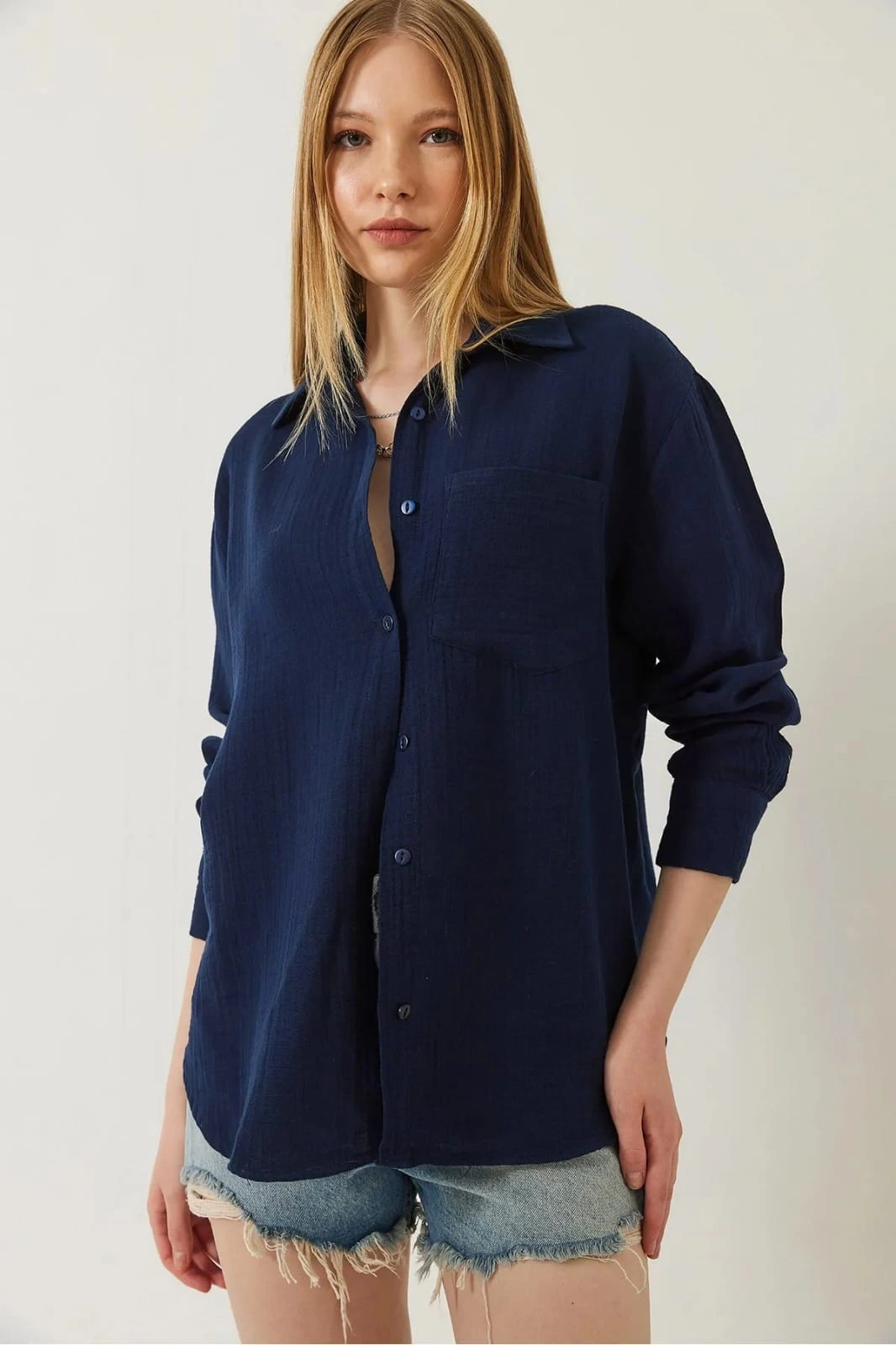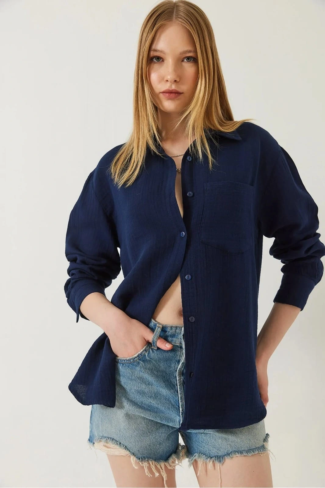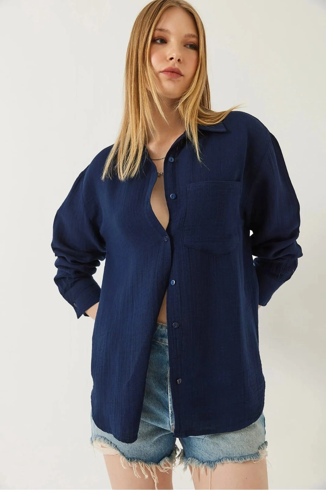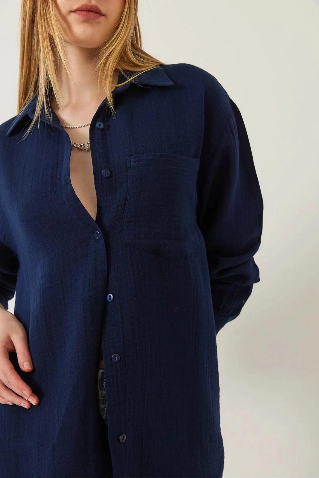 Şıklığı ve rahatlığı bir arada sunan Tek Cep Müslin Gömlek Mavi, gardırobunuzun vazgeçilmez parçalarından biri olmaya aday. Detaylı dikişleri ve kaliteli kumaşı ile gün boyu konfor sağlar.