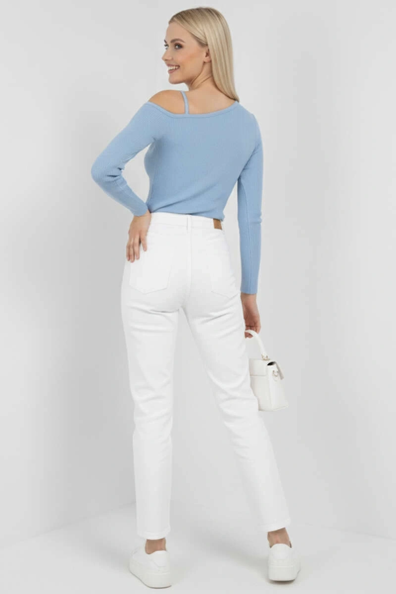 Şıklığı seven kadınların tercihi olan Tek Omuz İpli Bluz mavi t4328, farklı kombinlerle kolayca uyum sağlayarak gardırobunuzun vazgeçilmez parçalarından biri olmaya aday.