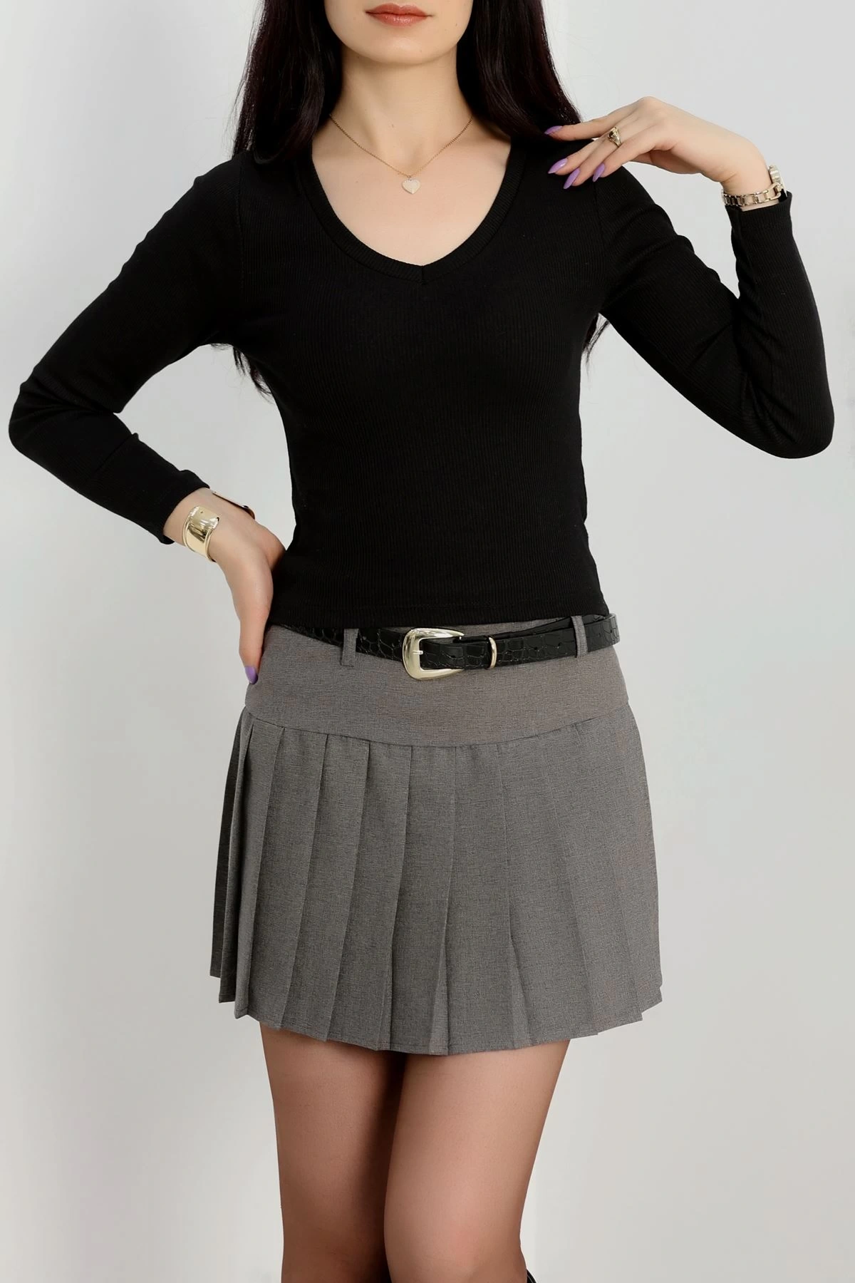 Şıklığı ve rahatlığı bir arada sunan V yaka kaşkorse bluz siyah a3699, gardırobunuzun vazgeçilmezi olmaya aday!
