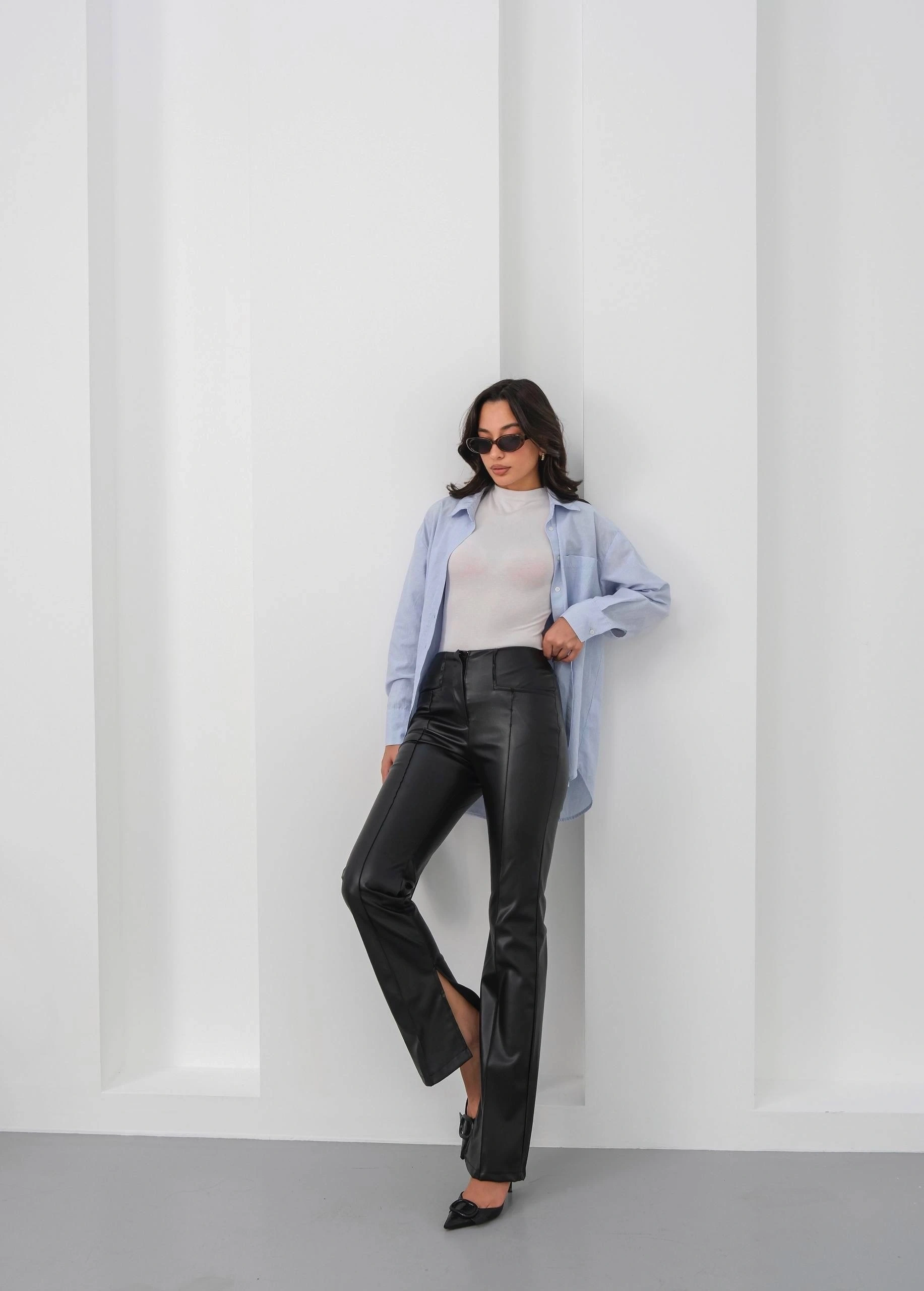 İspanyol yırtmaçlı paça deri pantolon siyah hn, hem günlük hayatta hem de özel günlerde şıklığınızı tamamlamak için ideal bir seçimdir. Sizin de gardırobunuzda mutlaka bulunması gereken bir parça!