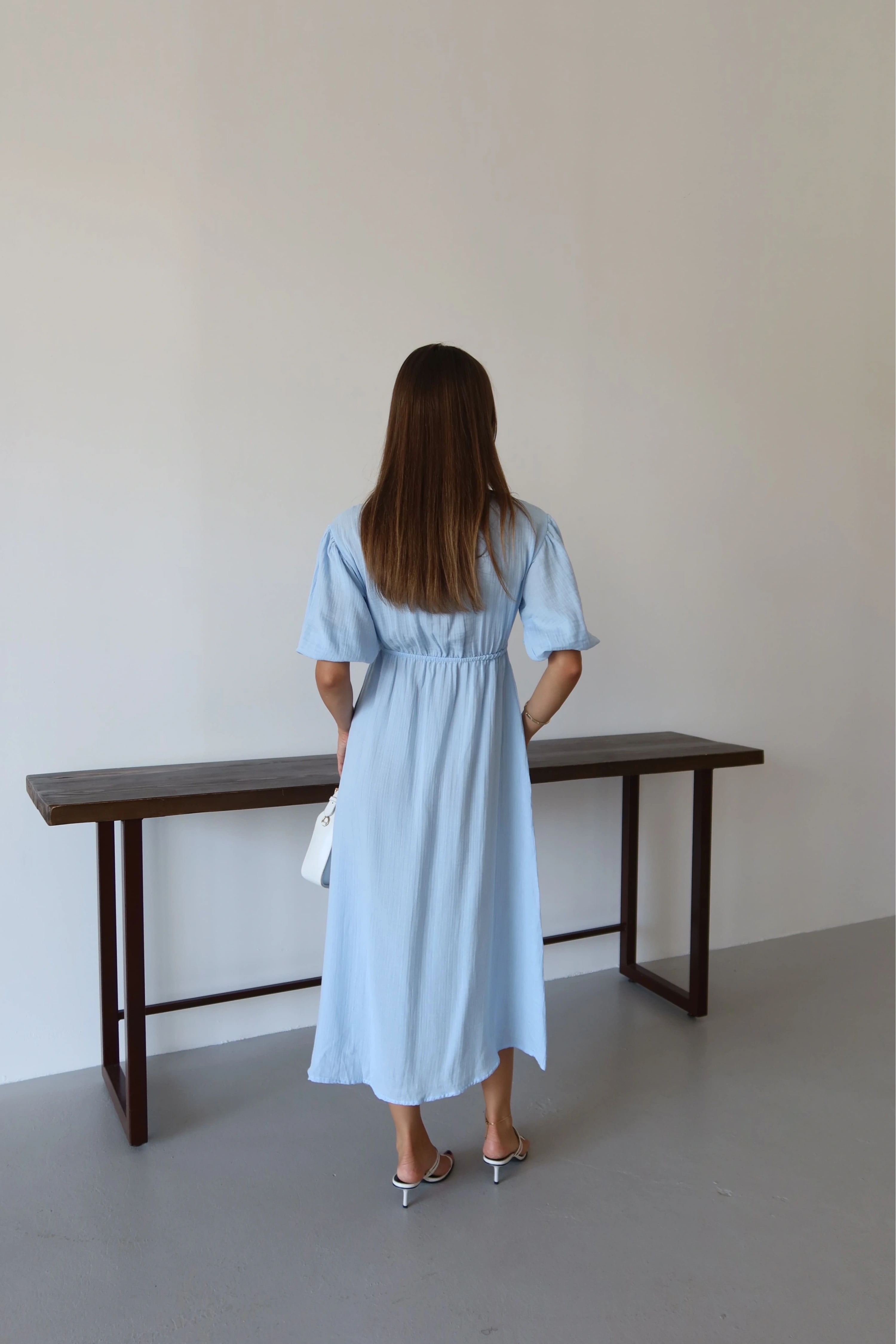 Kadın Giyim kategorisindeki elbise koleksiyonunda yer alan Kısa Kollu Müslin Elbise Mavi PT, gardırobunuzun vazgeçilmezi olmaya aday!