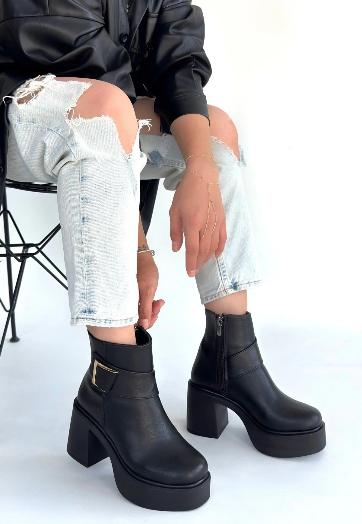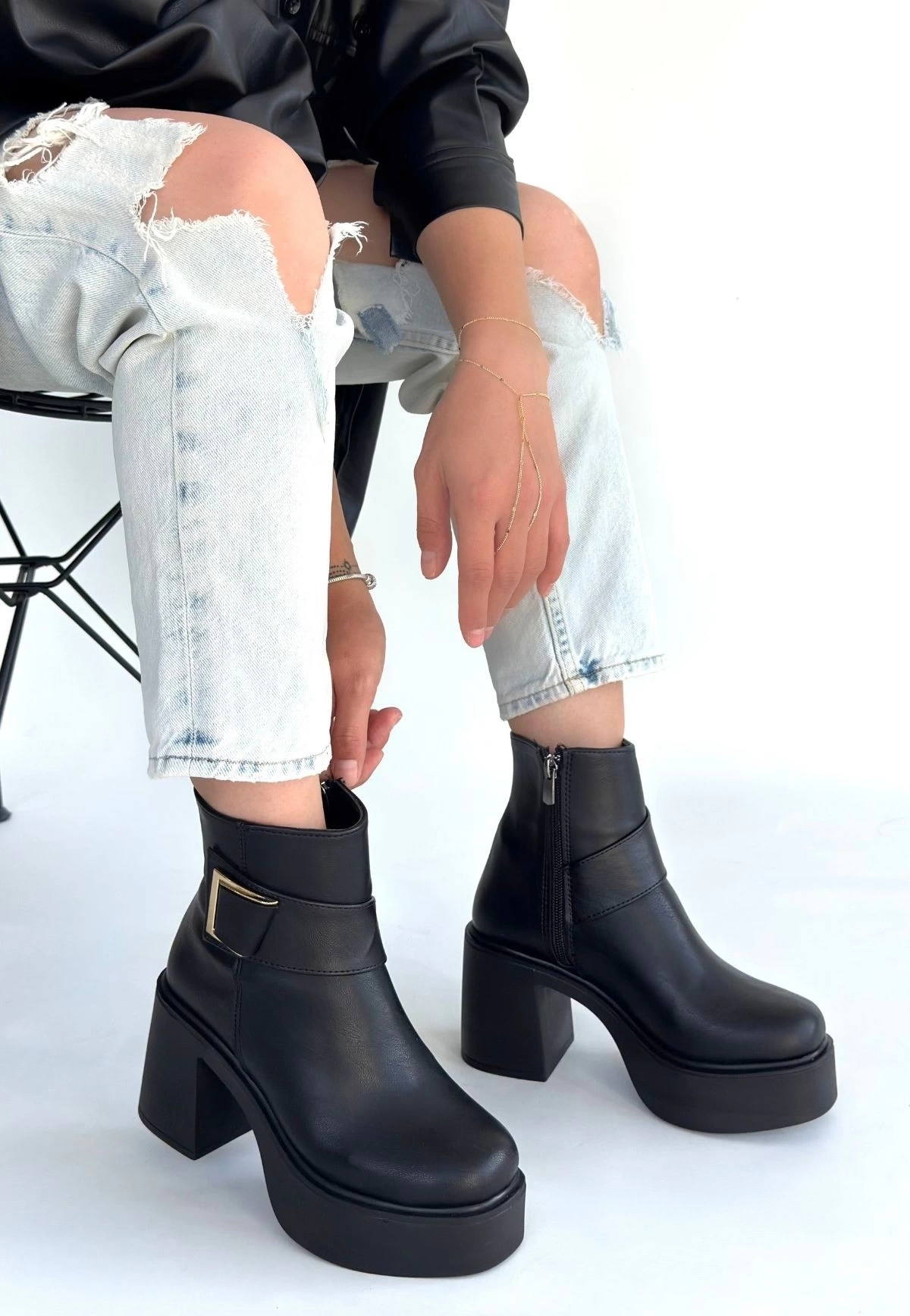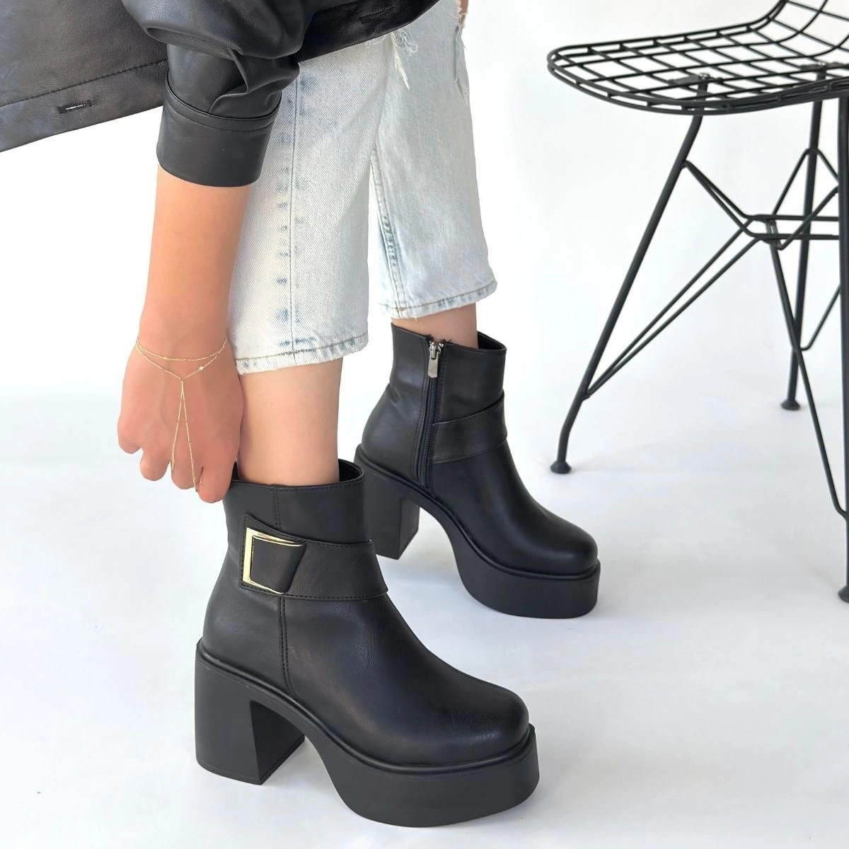 Detay: Topuklu Yandan Fermuarlı Bot