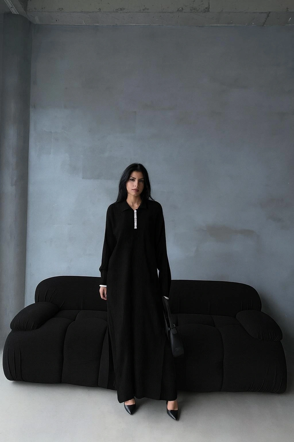 Şıklığı ve rahatlığı bir arada sunan Siyah Elf Pantolon Yırtmaçlı Elbise İkili Triko Takım, gardırobunuzun vazgeçilmez parçalarından biri olmaya aday.