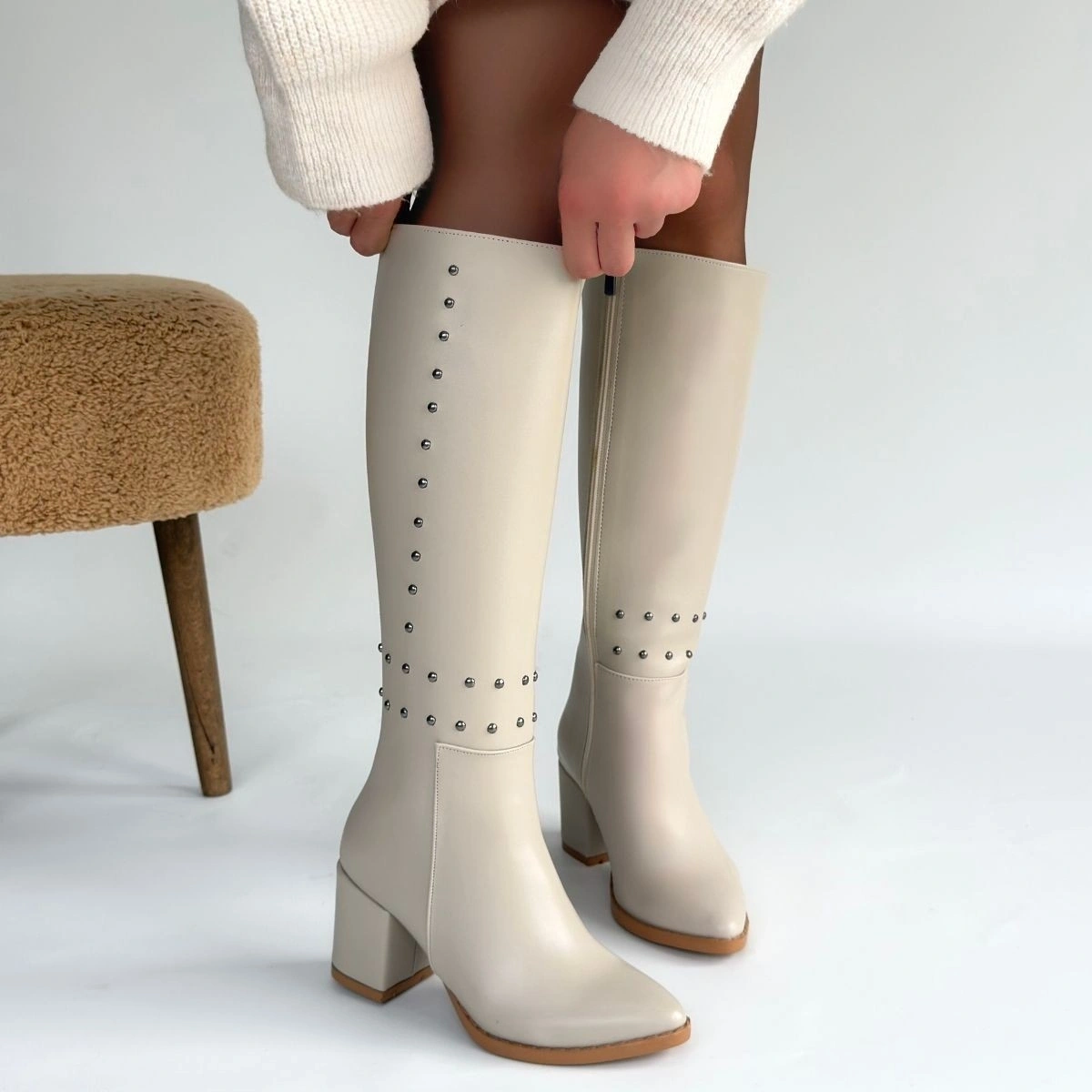 Detay: Topuklu Diz Altı Yandan Fermuarlı Çizme